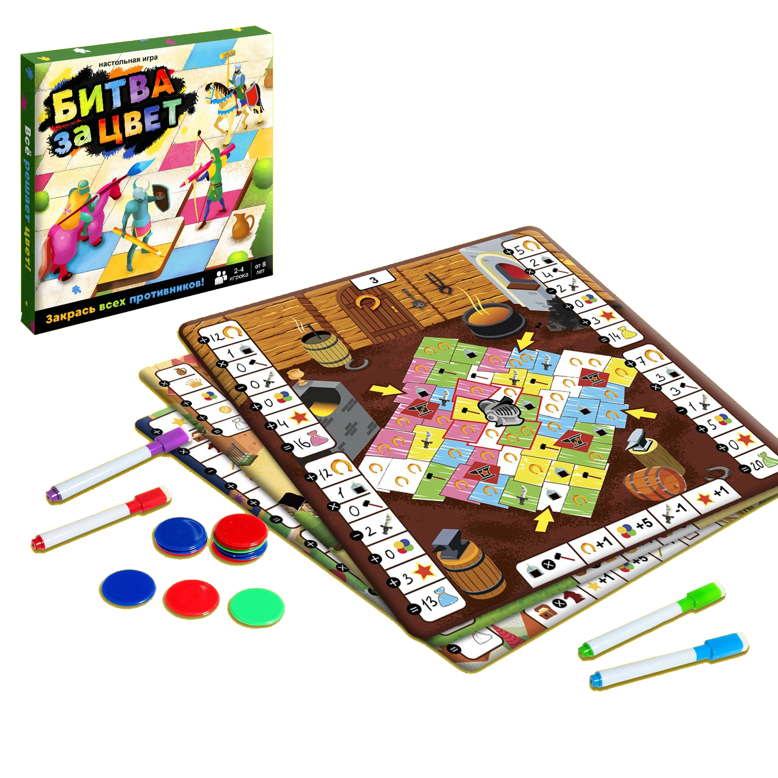 «Битва за цвет» — настольная игра где всё решает цвет! Чтобы победить, нужно закрашивать области на поле маркером своего цвета.