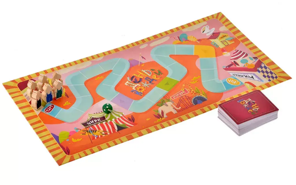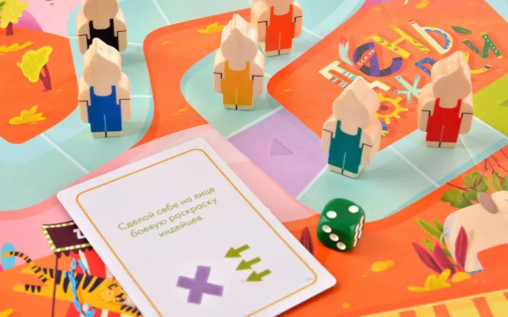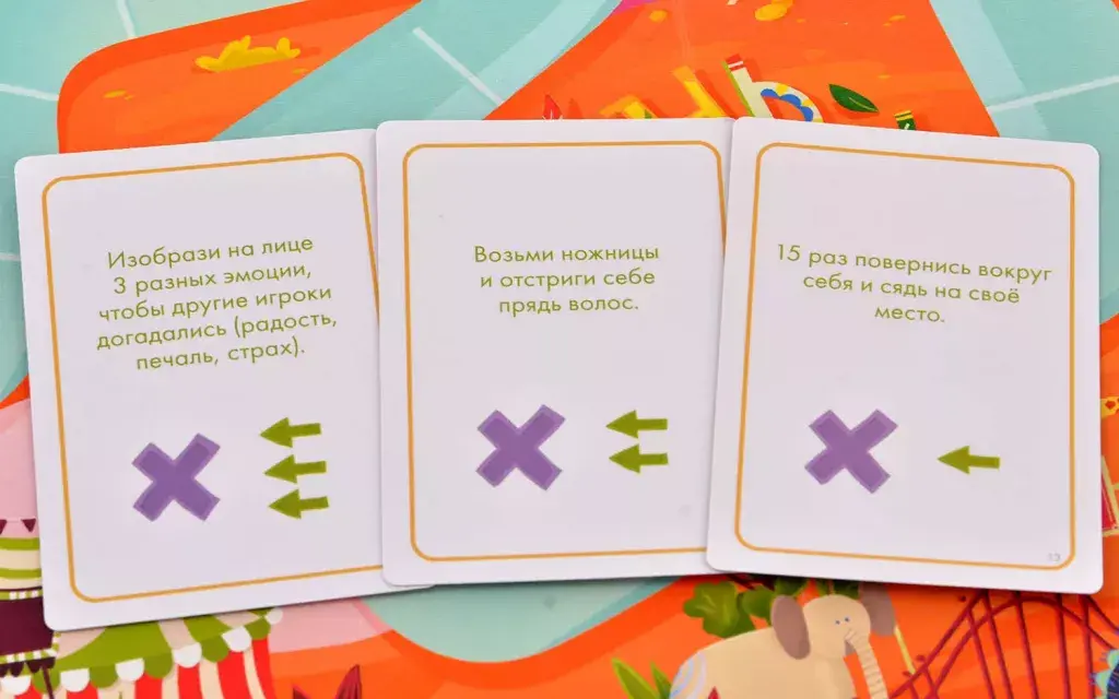 Кидать кубик, ходить по полю, тянуть карточки с заданиями. Если выполнили — оставаться на клетке, где вы встали, если нет — отходить назад.
