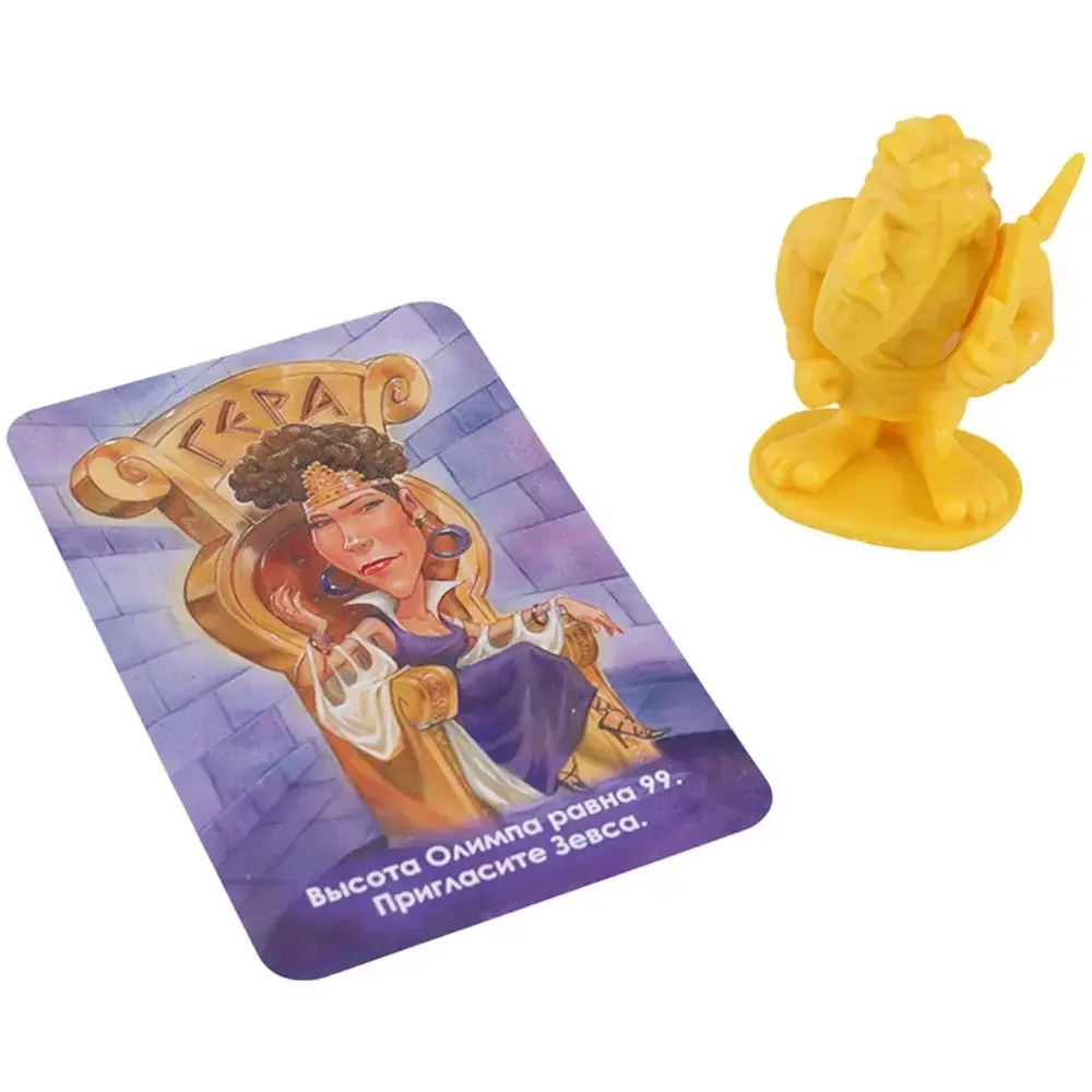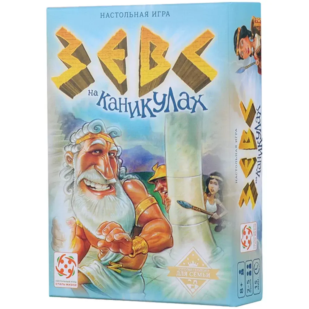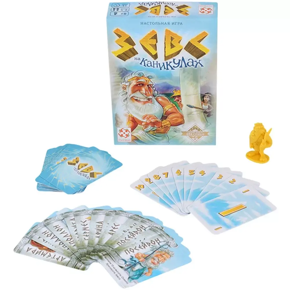 "Зевс на каникулах" – это не только весёлая карточная игра, но и отличный тренажёр устного счёта. В ней участникам необходимо создать собственную "гору Олимп", поочерёдно выкладывая в центр стола карты с числами и суммируя их значения. В ходе игры сам могучий Зевс будет перелетать от игрока к игроку, приняв облик маленькой жёлтой фигурки (ведь истинное воплощение божества смертным видеть нельзя). Остальные боги Олимпа будут помогать (или мешать) игрокам орудовать цифрами и выстраивать Олимп – складывать, вычитать, округлять и даже коварно менять цифры местами! Когда сумма карт в общей стопке достигнет 100 или больше, раунд заканчивается. Игрок, у которого в этот момент окажется фигурка Зевса, выигрывает раунд и получает букву из имени громовержца. Тот, кто первым соберёт все четыре буквы имени "Зевс", победит и сможет по праву называться настоящим олимпийцем!