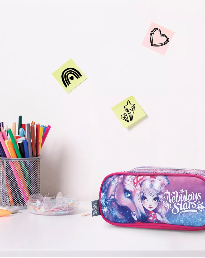 Галактика Nebulous Stars - это сказочный мир творчества и волшебства! Его обитатели – прекрасные Звёздочки готовы приоткрыть завесу тайны и раскрыть секреты космической силы и магии, проводить тебя в мир добра, красоты и положительных эмоций! Звёздочки Туманной галактики Nebulous всегда готовы поддержать девочек даже в школе! Роскошный пенал с 2 отделениями от звёздочки Nebulia сможет вместить всё, что тебе потребуется в школе, а яркий привлекательный дизайн и безупречное качество сделают учёбу приятной и увлекательной. Отлично подходит в качестве подарка для маленьких школьниц. У пенала устойчивый тканевый каркас, 2 больших отделения, закрывающихся на молнию.