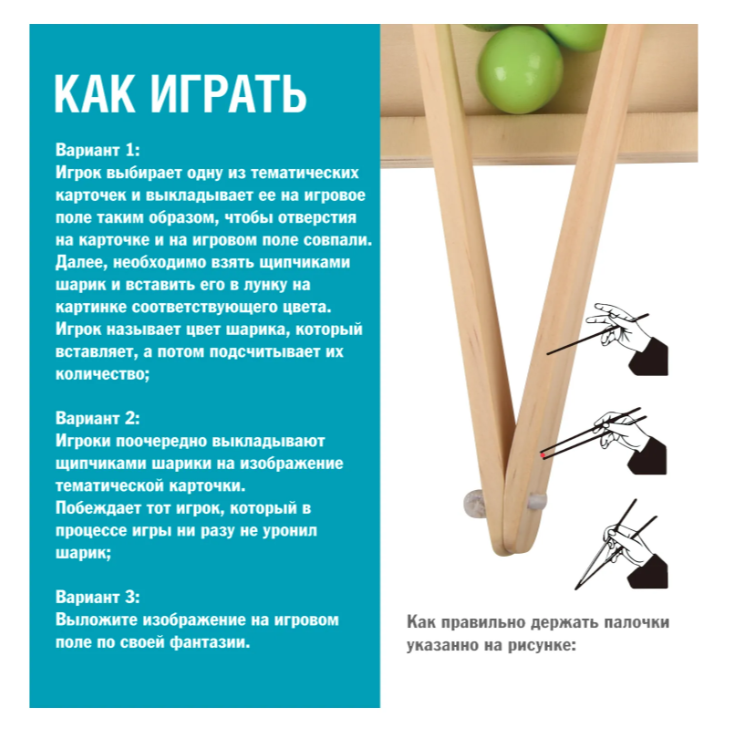 Деревянная игра состоит из основы с рядом маленьких отверстий, ярких...