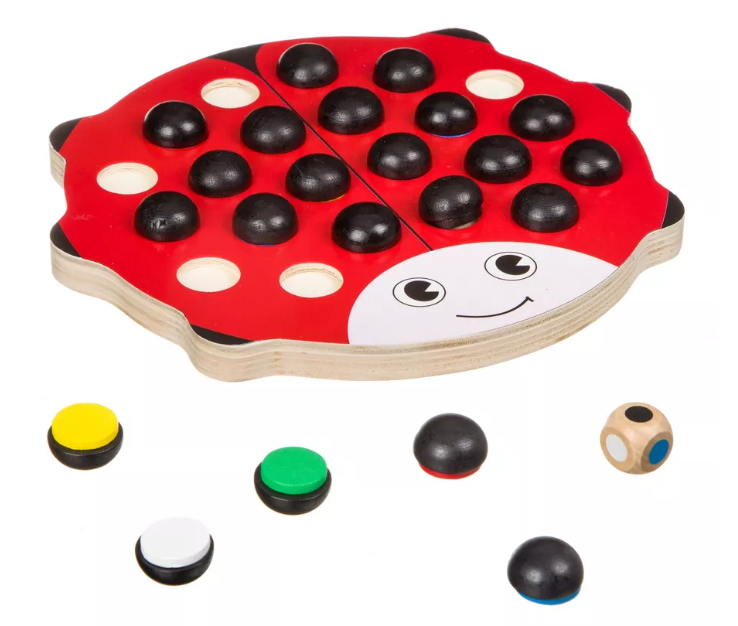 Разместите фишки цветной стороной вверх, запомните их расположение и переверните обратно. Бросайте кубик и пробуйте найти все фишки с выпавшим на кубике цветом. Если пара цветов раскрыта, — забираете фишку себе и повторяете ход. Цель игры собрать наибольшее количество фишек.