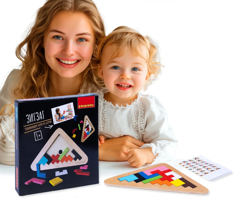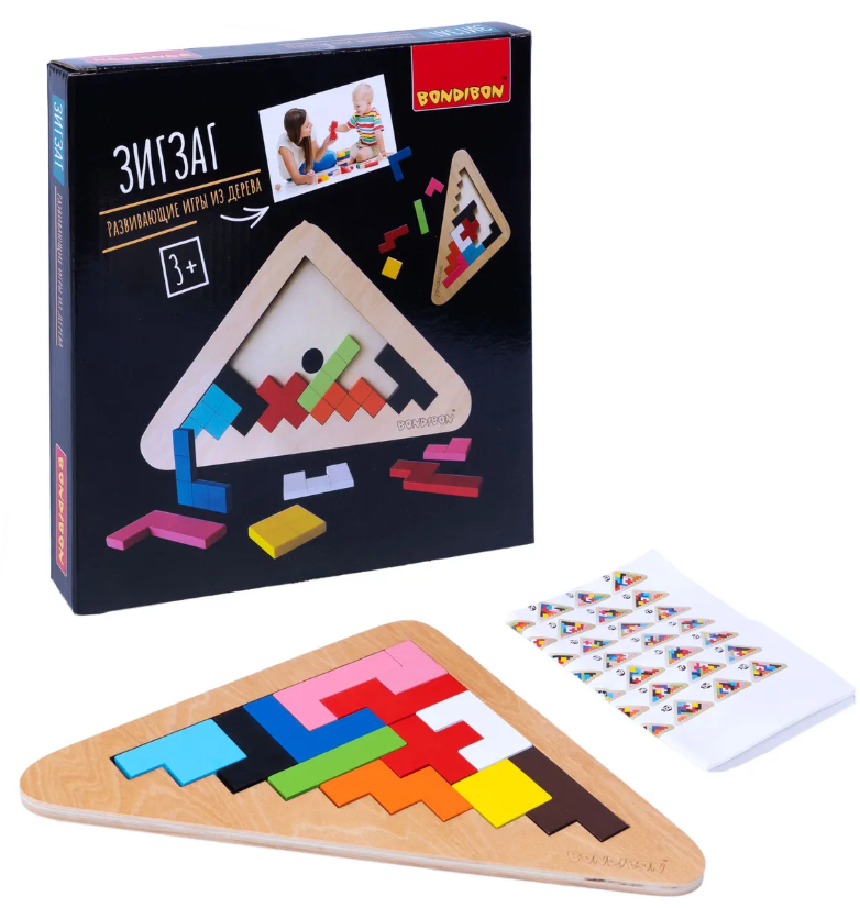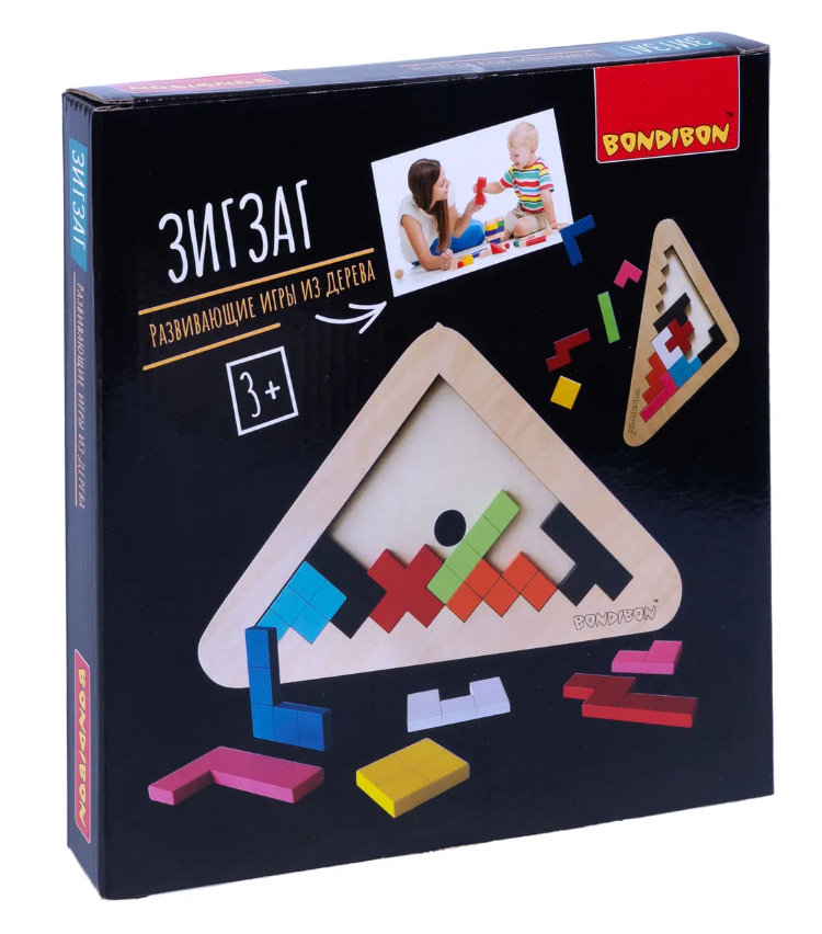 Детская деревянная развивающая игра Bondibon Головоломка "Зигзаг"
