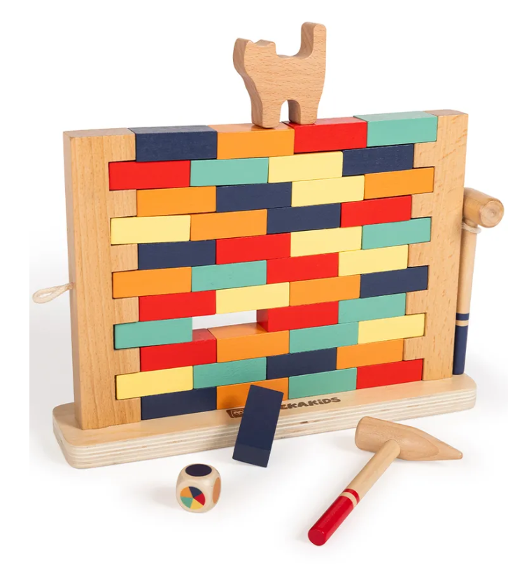 Головоломка "Играем вместе" Спаси кота! — это увлекательная настольная игра, которая привносит дух соперничества и стратегию в дружеские соревнования. Задача игроков предельно ясна: осторожно удалять кирпичи из стенки специальными молоточками, стараясь удерживать на верхушке котика. Тот, чей удар приведёт к падению кота, считается проигравшим. Участникам предлагается испытать удачу дважды: в режиме свободного выбора кирпича либо же доверившись судьбе, бросив кубик, который покажет, какого цвета кирпич нужно выбить из поля. Это создаёт напряжённую обстановку и усиливает необходимость сосредоточенности и терпения.