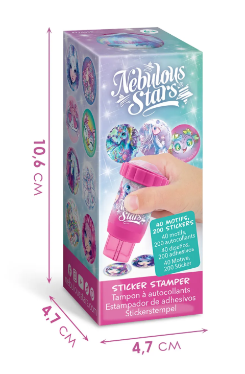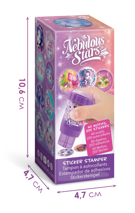 Штампер от бренда Nebulous Stars приглашает юных фантазёров окунуться в волшебство творчества прямо на страницах школьных тетрадей! Это увлекательное путешествие начинается с компактного набора ярких круглых стикеров (целых 200 штук!), каждый из которых раскрывает загадочные мотивы и персонажей Туманной Галактики.