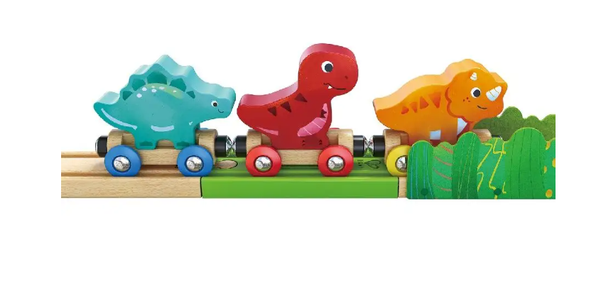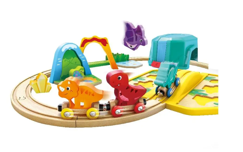 Игровой набор деревянная железная дорога для малышей «Парк динозавров» с...