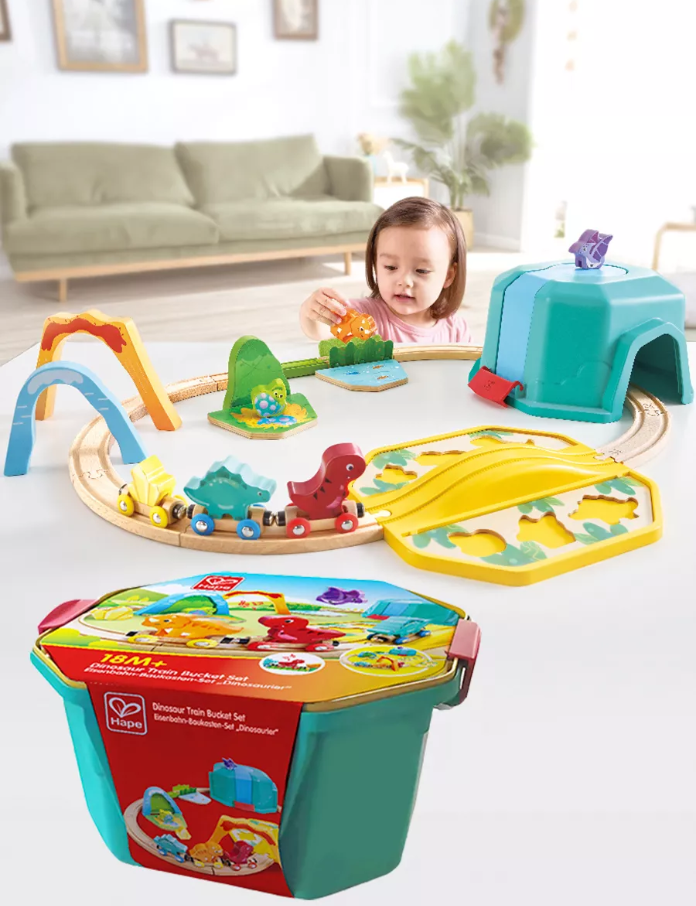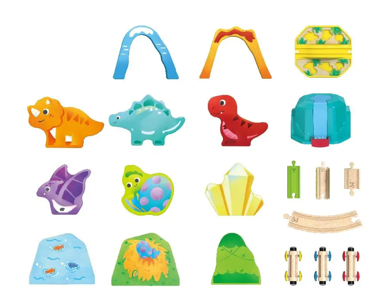 Игровой набор деревянная железная дорога для малышей с динозаврами, 27 элементов.