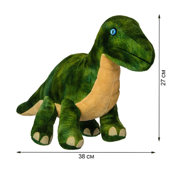 Этот плюшевый динозавр - Бронтозавр обязательно понравится ребенку. Зеленый окрас туловища и мордочки делают игрушку очень похожей на настоящего динозавра. Игрушка, изображающая внешний вид динозавра, удивительно реалистична. А на ощупь приятная и мягкая.