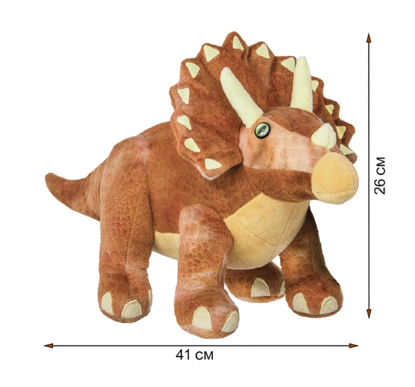 Этот плюшевый динозавр - Трицератопс обязательно понравится ребенку. Красный окрас туловища и мордочки делают игрушку очень похожей на настоящего динозавра. Игрушка, изображающая внешний вид динозавра, удивительно реалистична. А на ощупь приятная и мягкая.