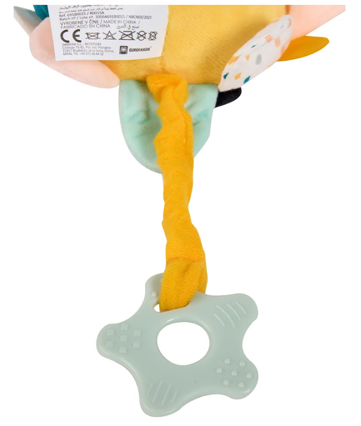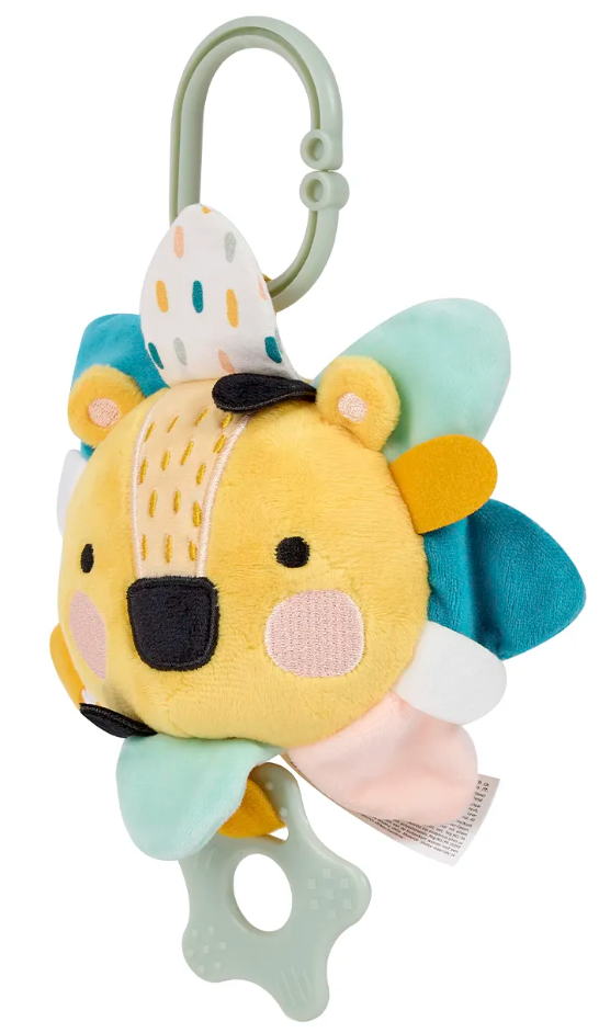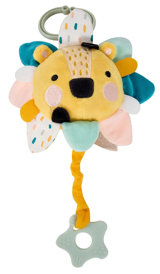 Подвесная игрушка Львенок привлечёт внимание малыша с самого рождения благодаря грамотно подобранной цветовой гамме, сочетающей пастельные тона с чётко контрастирующими тёмными элементами. Включает небольшие полоски разных цветов, узоров и фактур, предназначенные для жевания, тянущих движений и захвата руками. Некоторые элементы сопровождаются приятным хрустящим звуком бумаги. Игрушка разработана таким образом, чтобы её можно было исследовать и трогать ручками, и пробовать на зубки. Идеально подходит для подвешивания над детскими качалками, развивающими ковриками или колясками, обеспечивая увлекательное занятие ребёнку на долгое время. Дополнительно, потянув за прорезыватель-звёздочку, малыш услышит нежную колыбельную мелодию, помогающую ему спокойно уснуть. • Идеально подходит для подвешивания на гамаках, колясках и манежах. • Бархатистая текстура с вышитыми деталями — игрушка имеет элементы с различной текстурой для жевания и перетягивания.