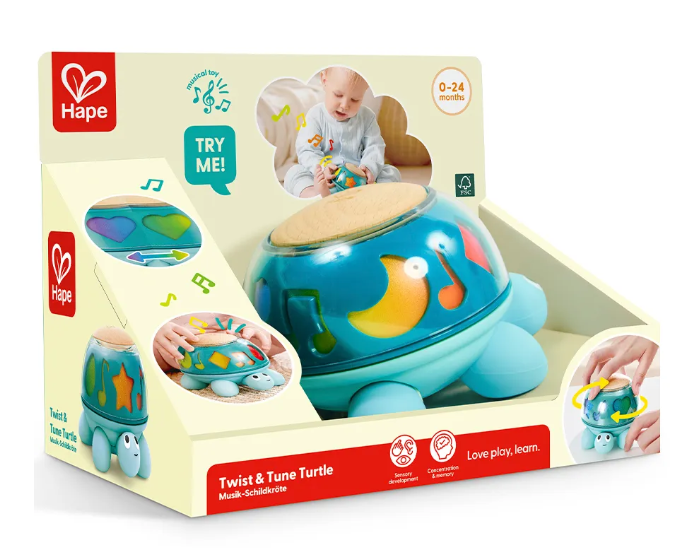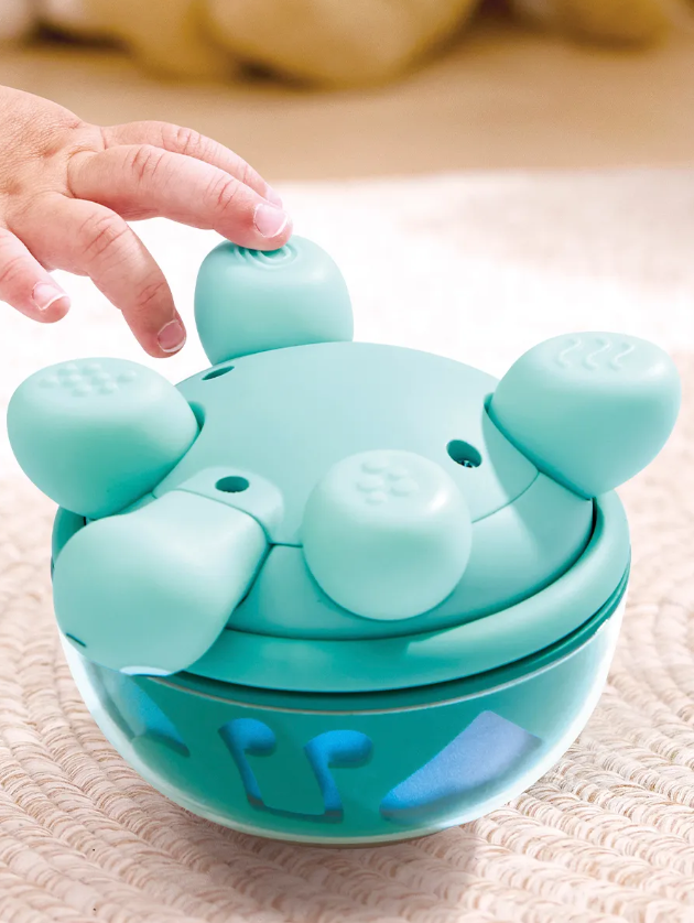 • Панцирь черепашки оборудован механизмом воспроизведения приятных музыкальных композиций, позволяющих детям познакомиться с музыкой и развить слуховую чувствительность.