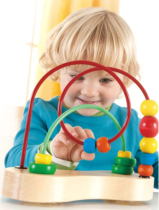 Портативный и увлекательный лабиринт из деревянных бусин обеспечивает бесконечное развлечение. Ваш малыш будет ходить разными путями, чтобы перебрасывать бусы.