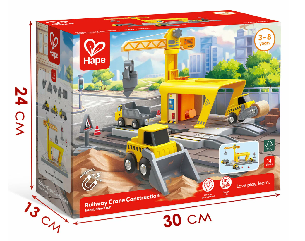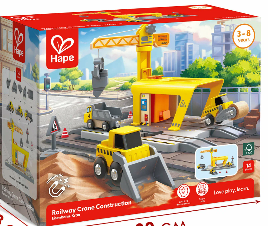- Возможности расширения игры. Совместимость с другими железнодорожными наборами Hape открывает неограниченные возможности для построения больших и сложных игровых ситуаций, способствуя длительному интересу и глубокому погружению в мир фантазии.