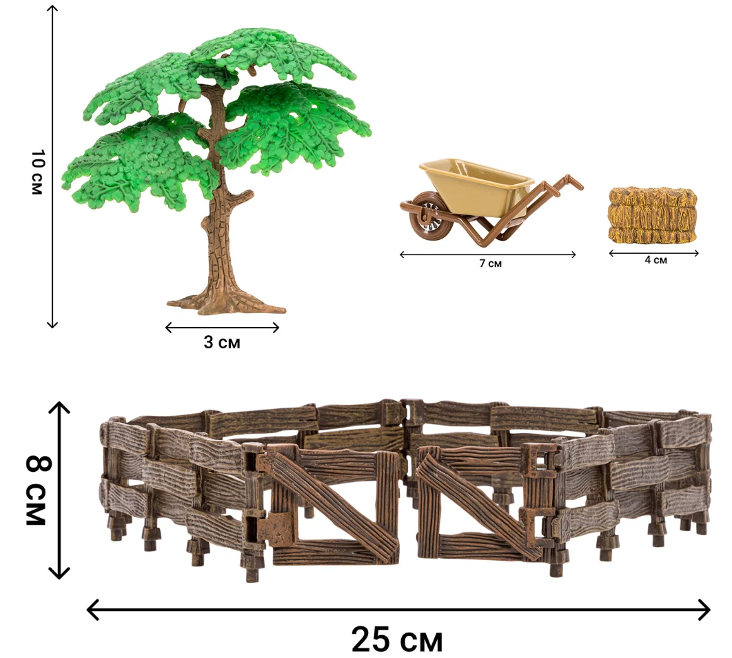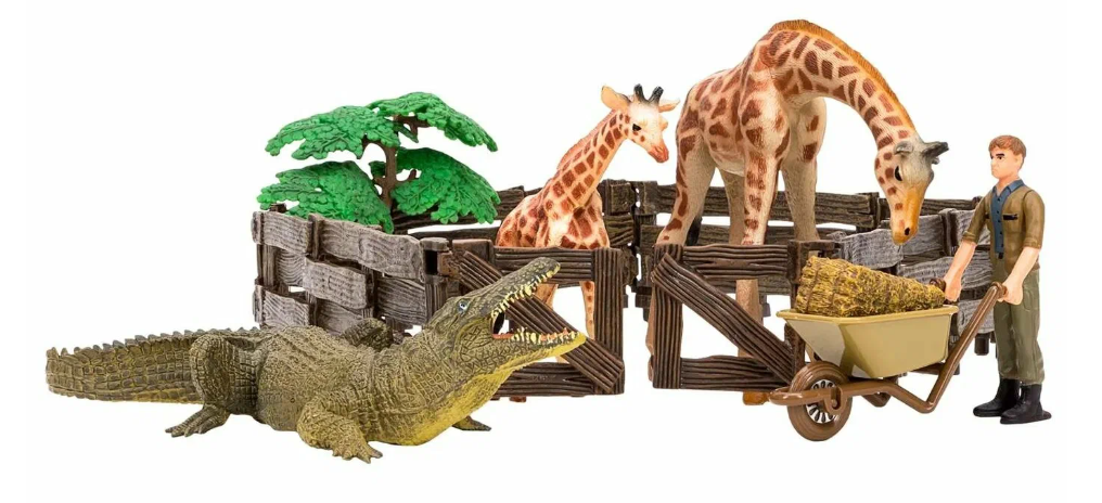• Набор фигурок являются уменьшенными копиями реальных животных, людей и зданий.