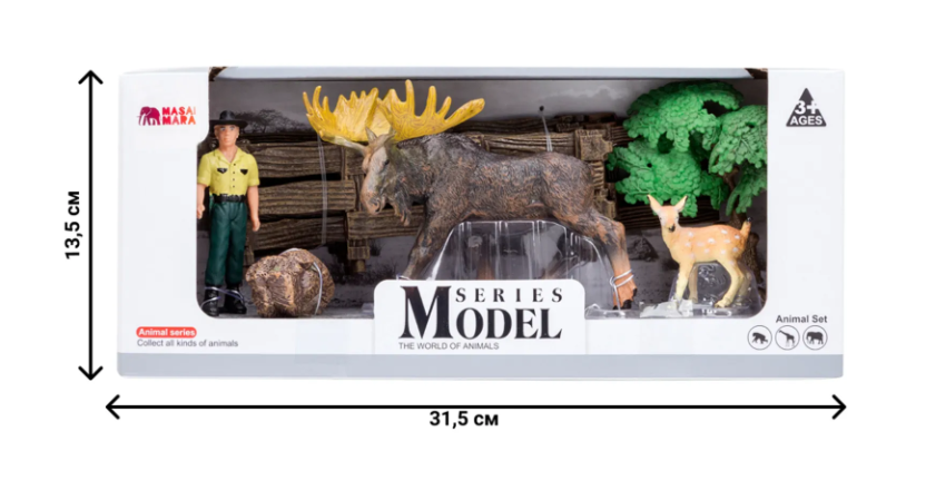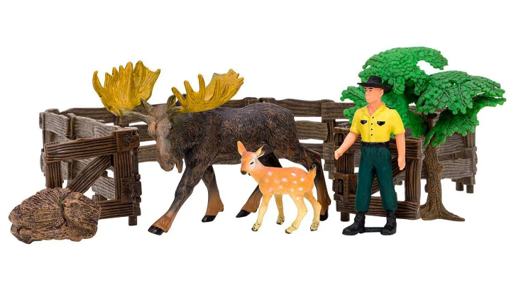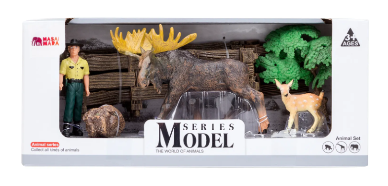 Игровой набор Masai Mara Мир диких животных: лось, олененок, фермер, дерево, забор
