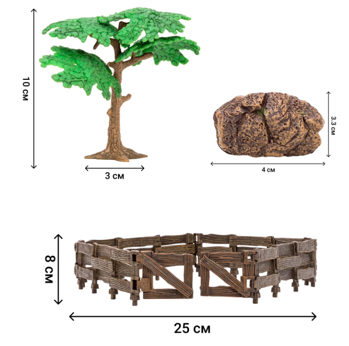 • Набор фигурок являются уменьшенными копиями реальных животных, людей и зданий.