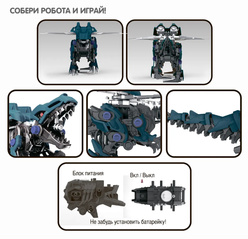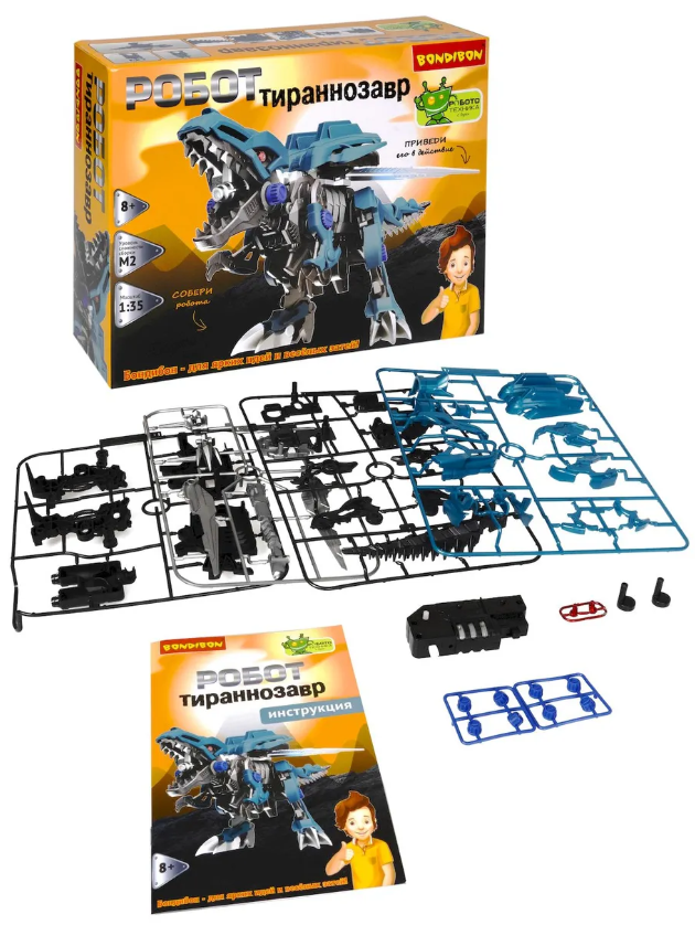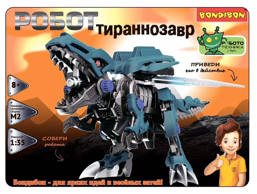 Механический робот Тираннозавр серии Робототехника с Буки от Bondibon — это уникальный развивающий конструктор для самостоятельной сборки, который способствует всестороннему развитию ребенка. Игровой набор помогает развить творческое мышление и логические способности через увлекательные игры и создание собственных 3д моделей.  Соберите могучего робота со множеством функций. Динозавр ходит, открывает пасть, может размахивать мечами. Передние лапы двигаются. Хвост, глаза и шея подвижны. На ящере установлена ракетница, которая поднимается и опускается. Сложности сборки - М2 супермастер средний уровень. Масштаб 1:35 В наборе: детали конструктора, блок питания, подробная инструкция. Дополнительно понадобятся: отвертка, бокорезы и батарейка типа ААА (в комплект не входят). Сборка и разборка делает процесс игры необычным и интерактивным, превращая набор в увлекательный тренажер для развития мелкой моторики, логики и технических навыков. Игры с роботом динозавром дают простор воображению, пробуждают интерес к науке, добавляют элемент экспериментов и исследований, что особенно интересно для детей разного возраста. Детский конструктор помогает развивать навыки моделирования, силу рук и координацию движений. Сборная модель станет полезной штучкой для развлечения и увлекательного досуга. Будущий изобретатель знакомится с научными принципами действия физики, техники и механики. А также развивает технические навыки, инженерную мысль и математический расчет.