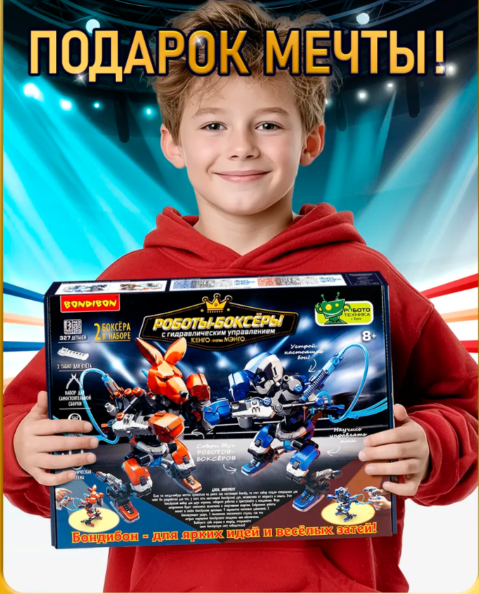 Игрушка конструктор Роботы-Боксеры с гидравлическим управлением Bondibon
