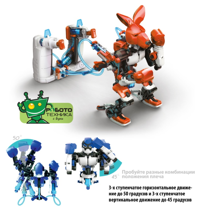 Большой игровой конструктор продемонстрирует ребенку принцип работы гидравлической системы, разовьет мелкую моторику, внимание, интерес к робототехнике, даст практический опыт конструирования и моделирования. Процесс сборки интересный и понятный даже для начинающих инженеров и любителей экспериментов. Соберите две модели роботов с гидравлическим управлением и два табло по инструкции. Позовите друга, выберите маску оранжевого или синего игрока и приступайте к поединкам. Управляйте движениями рук боксеров с помощью джойстиков, подсоединенных к роботам гидравлическими трубками. Бойцы имеют в своем арсенале: 9 вариантов плечевых движений, 2 боксирующих удара, 3 положения поясничного отдела. Каждый балл начисляется противнику за сбивание головы или тела и отображается на табло. В комплекте: 327 деталей, инструкция со схемой сборки. Понадобятся кусачки, стакан воды и тонкий фломастер (не входят в набор). Ребенок познакомится с принципами работы гидравлических систем и основами физики и механики, а также разовьет логическое мышление и координацию движений. Сборная STEM модель прокачивает навыки самостоятельного моделирования и создания сложных конструкций, а так же техническое и пространственное воображение.
