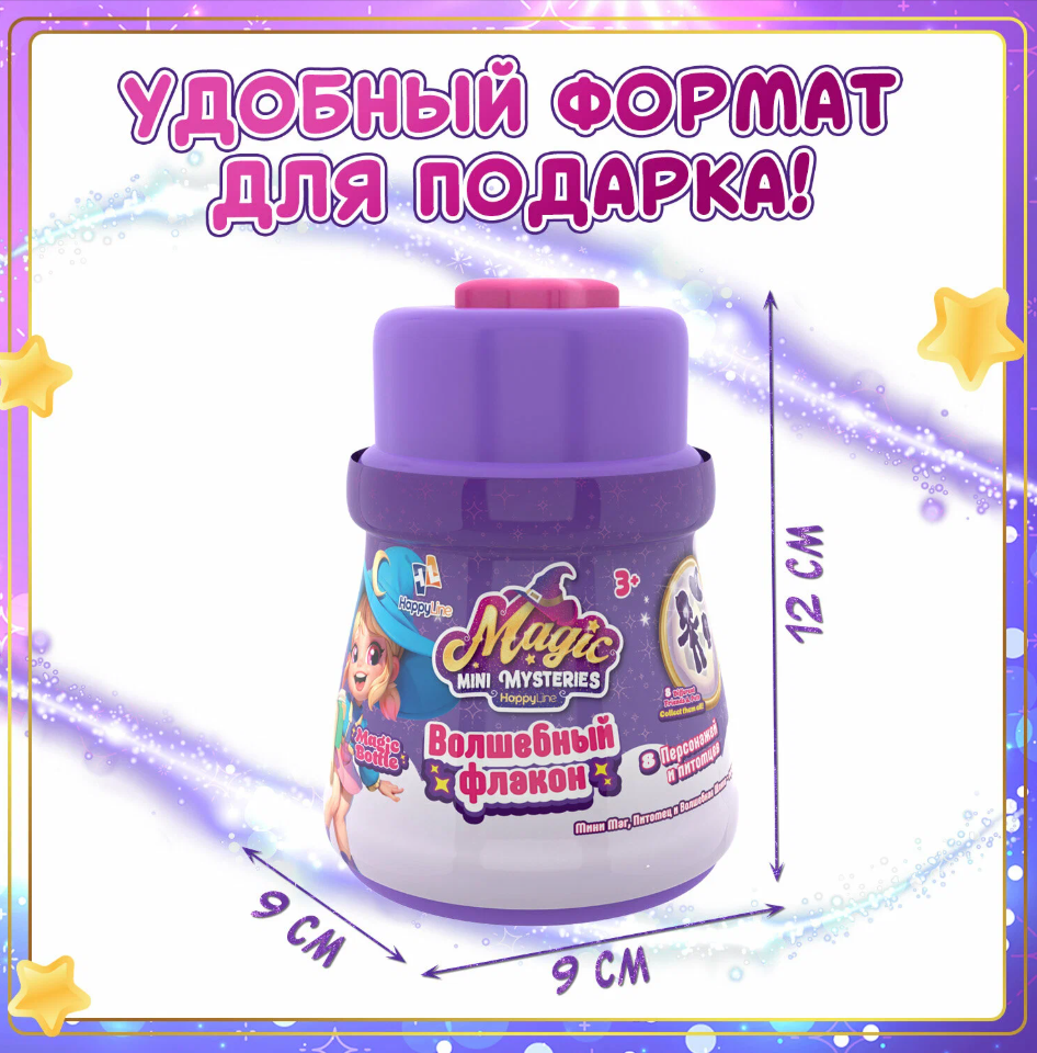 Magic Mini Mysteries — это серия волшебных игровых наборов, превращающих детскую комнату в настоящий сказочный мир приключений и чудес. В каждом наборе есть свои секреты, почти каждый элемент — это часть фокуса. Сможете ли Вы разгадать все тайны? Погрузитесь вместе с ребенком в мир магии и увлекательных приключений с набором "Волшебный флакон"! Комплект включает фигурку ведьмы, её шляпу и забавного питомца, и все они — случайные! Особенности набора: • Каждый набор уникален: собирайте свою коллекцию мини-магов. Каждая ведьмочка обладает своим характером и увлечениями. • Уникальная крышечка с магическим механизмом (на магните) поможет сотворить фокус с появлением питомца внутри флакона. • Мульти-фокус — это значит, что повторять фокус можно многократно, что увеличивает интерес от игры. • Подробная инструкция поможет юным волшебникам освоить секреты комплекта. • Все комнаты и комплекты от Magic Mini Mysteries совместимы друг с другом. Собирайте другие наборы и создайте свой собственный волшебный город!   Случайная фигурка мини-мага. Питомец-сюрприз. Шляпа тоже случайная! Инструкция с гидом по персонажам. Откройте дверь в мир чудес и позвольте ребенку почувствовать себя настоящим волшебником! И не забудьте волшебные слова: "Мэджик Мини Мистерис!"