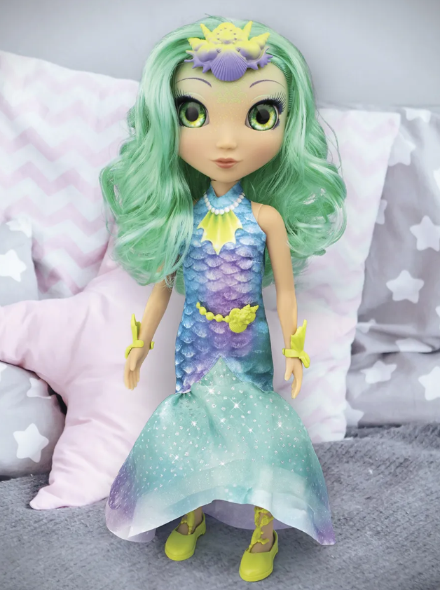 Мариния - это волшебная кукла с длинными изумрудными волосами и ростом 38 сантиметров. В комплект входят: кукла, сапожки, платье из атласа с ярким узором и блестящими деталями, головной убор, браслеты, пояс и полный рассказ о приключениях звездочки.