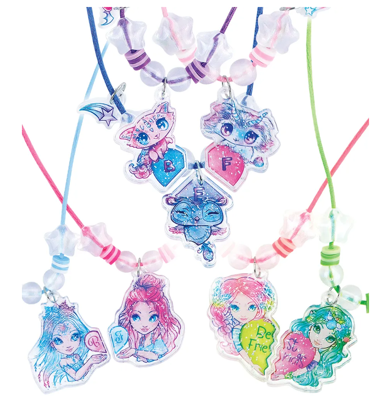 Этот творческий набор позволит запечатлеть самые светлые моменты вашей дружбы в виде красивых амулетов. Используй яркие акриловые подвески, стильные бусины и разноцветные шелковые шнуры, чтобы создать оригинальные украшения.