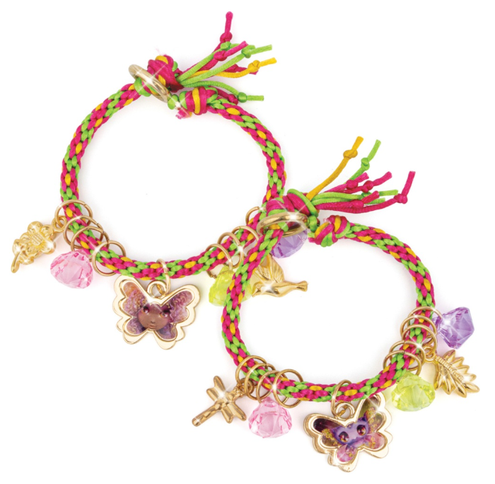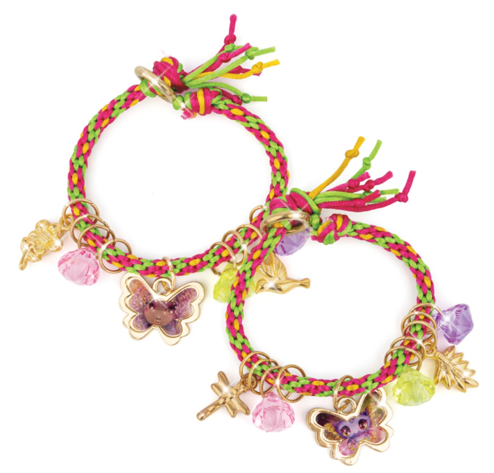 Набор для творчества по созданию украшений для девочек браслетов дружбы. Плетение и декорирование браслетов с помощью специальных колёс для плетения, шёлковых нитей семи цветов, стразов, бусин и амулетов. Большое количество вариантов дизайна.