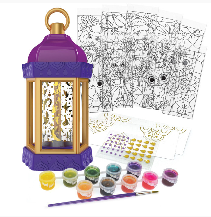 Создайте волшебный ночник для детской комнаты с набором для творчества "Фонарь-светлячок" от Nebulous Stars. Разукрашивайте и декорируйте витражи с помощью специальных красок, наклеек из фольги и наклеек со стразами, чтобы создать уникальный светильник.