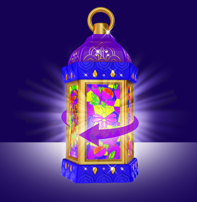 Комплектация набора включает фонарь-ночник, USB-кабель, 10 сменных элементов витражей, набор красок (10 цветов), наклейки из фольги, 50 наклеек со стразами, подробную инструкцию и буклет с историей звёздочки Orelia.