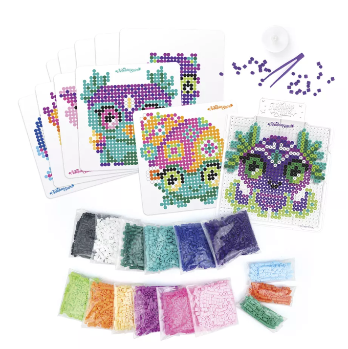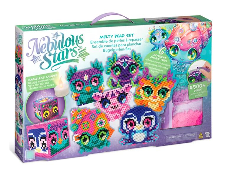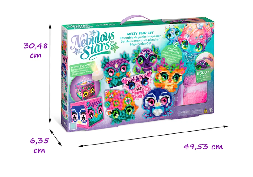 Галактика Nebulous Stars - это сказочный мир творчества и волшебства! Его обитатели – прекрасные Звёздочки готовы приоткрыть завесу тайны и раскрыть секреты космической силы и магии, проводить тебя в мир добра, красоты и положительных эмоций! Набор для творчества по созданию пиксельных картин - термомозаика. Ты сможешь создать портрет питомца своей любимой звездочки из Туманной галактики Nebulous, используя карточки с рисунками, доску для бисера и пергамент. Выбери бусины подходящих цветов и трафарет, насади их на доску, прогладь бусины утюгом через пергамент 30-60 сек с помощью взрослого. Комплектация: доска для бисера, 11 карточек с рисунками, более 4500 бусин разных цветов, беспламенная свеча (работает от батарейки: 1хCR2032 - входит в комплект), пластиковый пинцет, пергамент, истории обитателей Туманной галактики Nebulous, инструкция.