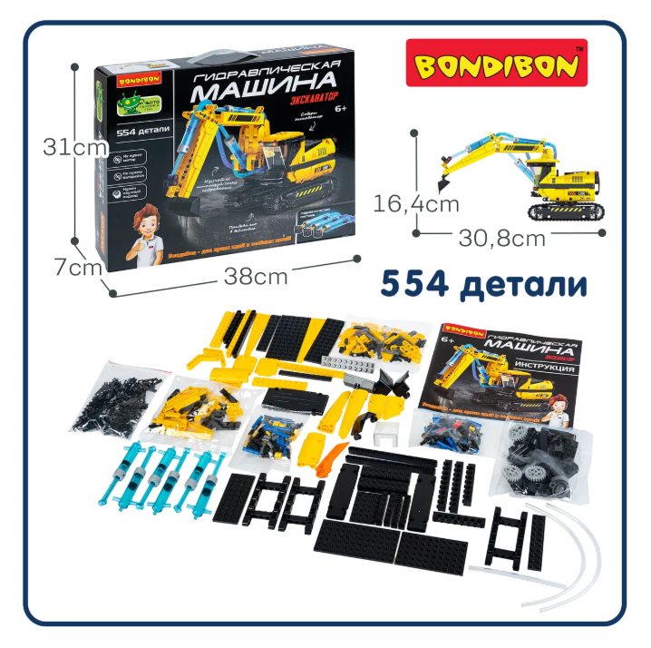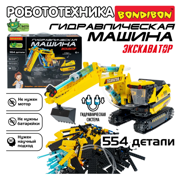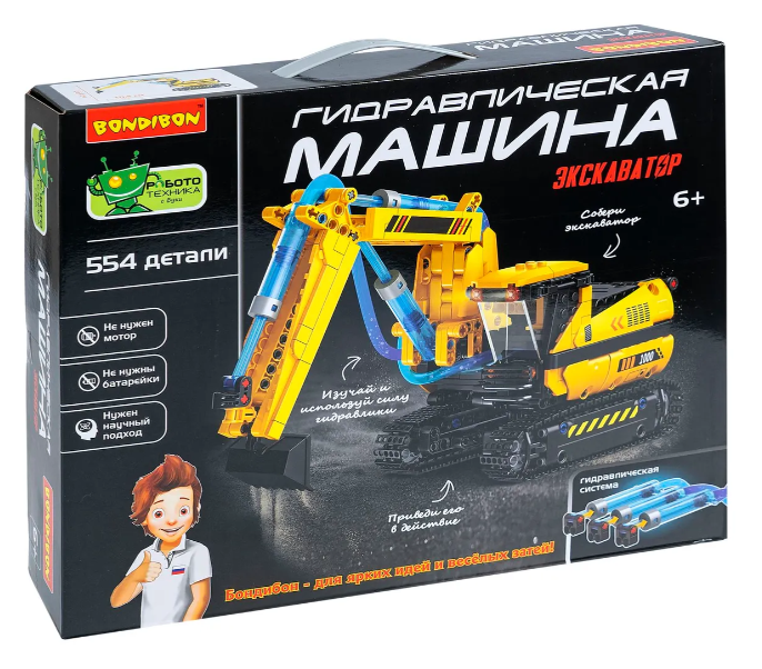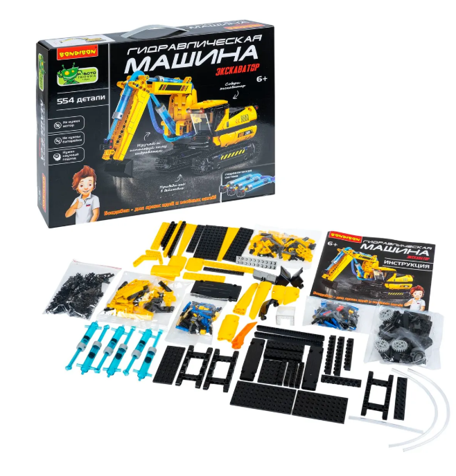 Большой игровой конструктор сочетает в себе функции механической хваталки, подъемного крана и умного манипулятора, позволяя ребенку самостоятельно собрать и управлять настоящей гидравлической техникой, которая работает на воде и не требует батареек или электропитания. Процесс сборки робота интересный и понятный даже для начинающих инженеров и любителей экспериментов. Собранная строительная машина будет двигаться, как настоящая, развивая тягу ребенка к конструированию и науке. Гидравлический экскаватор можно вращать на 360 градусов, двигать стрелу, рукоять и ковш и играть в стройку .  Детская игрушка – развивашка безопасна и экологична, ведь работает только на воде.Ребенок познакомится с функциональной гидравлической системой, основами физики, механики, а также разовьет: логическое мышление и внимание, мелкую моторику и координацию движений. Сборные STEM модели прокачивают навыки самостоятельного моделирования и сборки сложных конструкций, а так же техническое и пространственное воображение. Даже взрослым будет интересно участвовать в сборке и испытаниях!