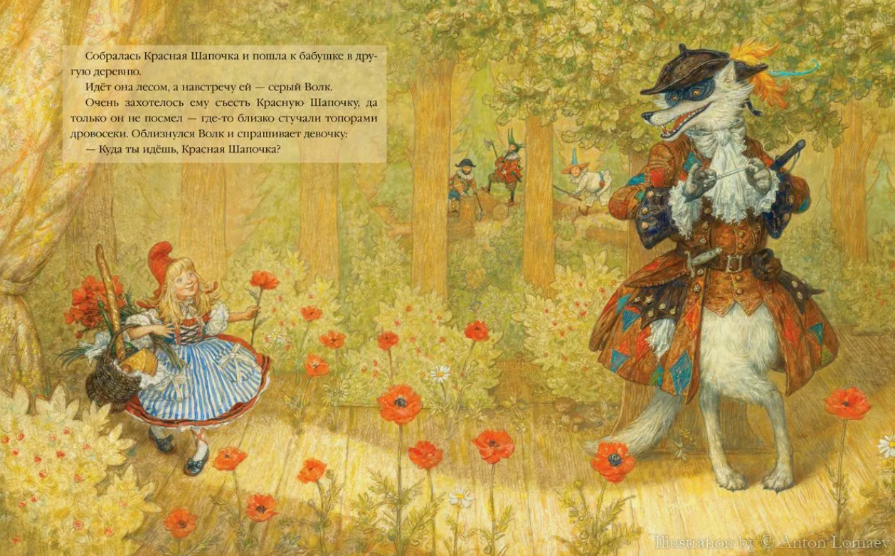 Персонажам сказок Шарля Перро суждена долгая счастливая жизнь как в литературе, так и в сердцах маленьких читателей. Золушка и Спящая красавица, Кот в сапогах и Красная Шапочка стали любимыми друзьями всех детей. А если за интерпретацию такой знакомой и с детства любимой сказки, как "Красная Шапочка", берется замечательный петербургский художник Антон Ломаев, можно с уверенностью сказать, что ее новая жизнь будет яркой, неожиданной и захватывающе интересной! Слышите стук? Это стучат по булыжной мостовой деревянные колёса фургончика бродячих артистов. А это значит, что скоро раздвинется разноцветный занавес, и мы увидим увлекательный спектакль, главные герои которого нам хорошо знакомы. Иллюстрации неповторимого питерского художника Антона Ломаева.