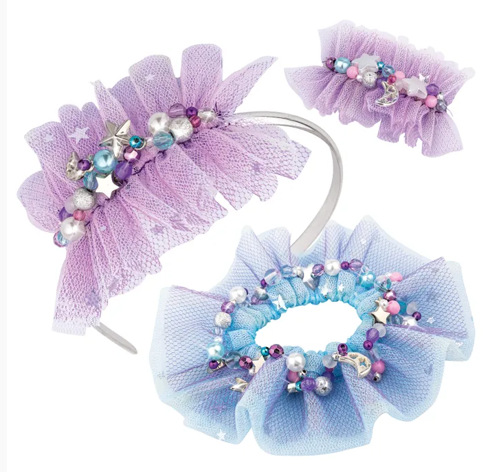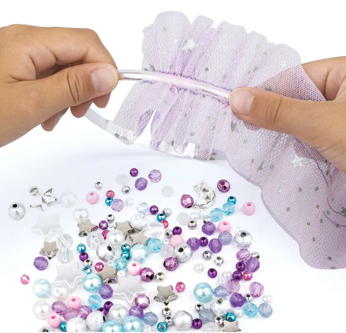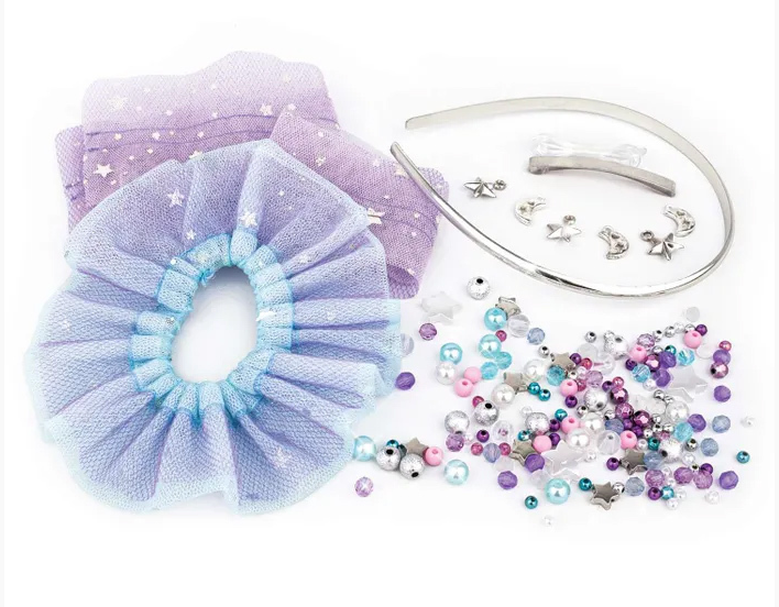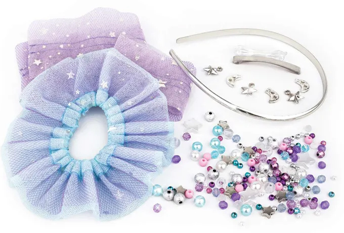 Творческий набор для создания аксессуаров для волос от бренда Nebulous Stars предлагает вам уникальную возможность погрузиться в мир ручного труда и творчества. Этот набор идеален для тех, кто хочет добавить в свой образ индивидуальные украшения для волос, созданные своими руками. В наборе содержится все необходимое для изготовления аксессуаров: разнообразные элементы для украшения, такие как бусины, блестки, ленты и проволока, а также инструменты для работы. Благодаря пошаговым инструкциям, даже начинающим в рукоделии будет легко создавать уникальные аксессуары, которые можно будет использовать в повседневной жизни или подарить близким. Набор для творчества по созданию аксессуаров для волос (ободок, заколка и резинка) серии "Estrelia", это декорирование заготовок, с использованием тюли бусин и подвесок. К набору прилагается подробная инструкция по использованию материалов для украшения и правильного их крепления, а также буклет с историей звёздочки Estrellas. Комплектация: 3 основы из тюля, 1 основа для ободка, 1 основа для заколки, бусинки и подвески в ассортименте, эластичная резинка, полная история звёздочки Estrellas, инструкция.  Этот набор не только позволит вам развить творческие способности, но и добавит яркости и оригинальности вашему образу.