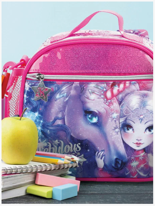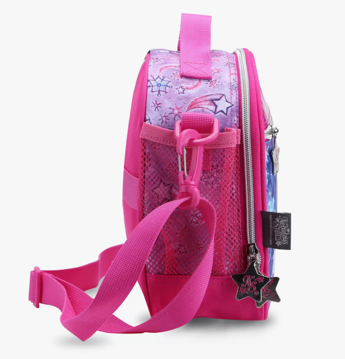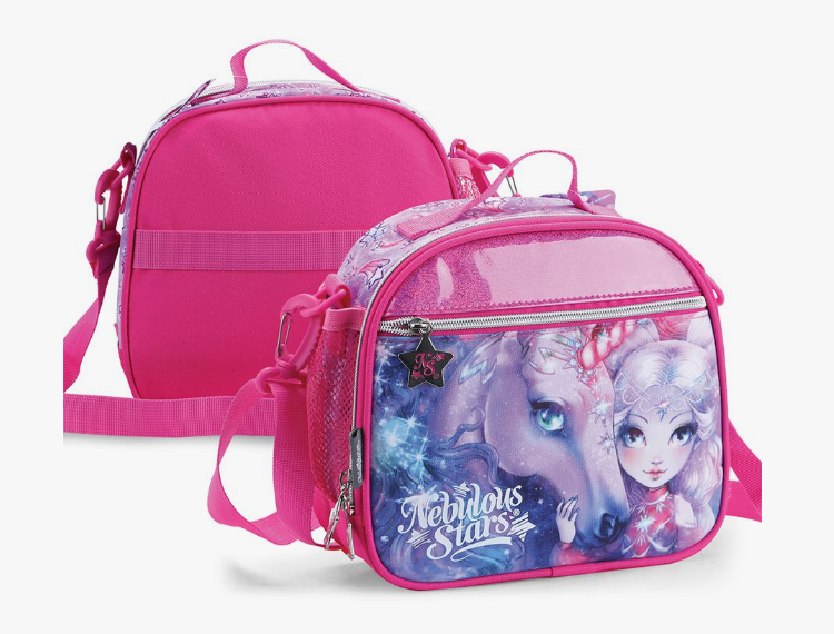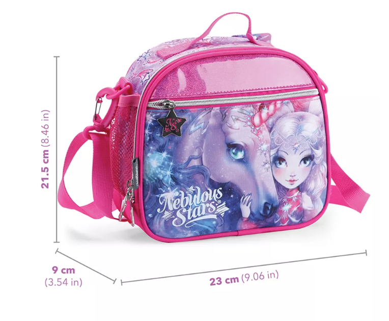 Волшебная сумка для ланчбокса от звёздочки Nebulia. Прекрасное дополнение к твоему школьному рюкзаку или пеналу с принтами на тему Туманной галактики Nebulous. Сумочка состоит из большого отделения на молнии и оснащена передним карманом, боковым сетчатым кармашком, а также съёмным регулируемым ремешком для комфортного ношения. Благодаря внутреннему фольгированному слою твой обед останется свежим на протяжении долгого времени. Сумочка изготовлена из безопасных материалов, пригодных для близкого контакта с пищей.